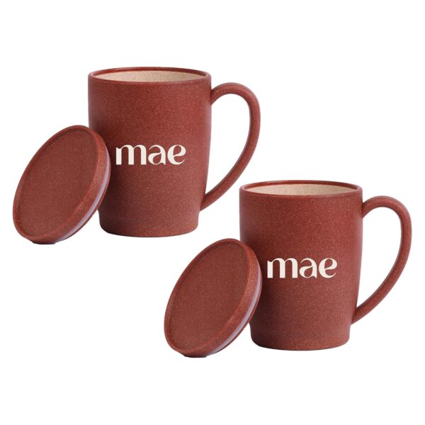 MAE Coffee Mug with Lid | 370 ML | Made with Rice Husk | Eco Friendly & Sustainable Cup | Insulated | Microwave Safe | Travel Friendly | Spill Proof | Office | Home | Gift | Mug | Cup with lid | 2 pc