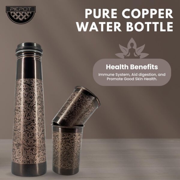 ★ Complete Drinkware Set: Includes 1 copper bottle (1L) and 2 matching copper glasses (300ml each) – perfect for home or gifting.