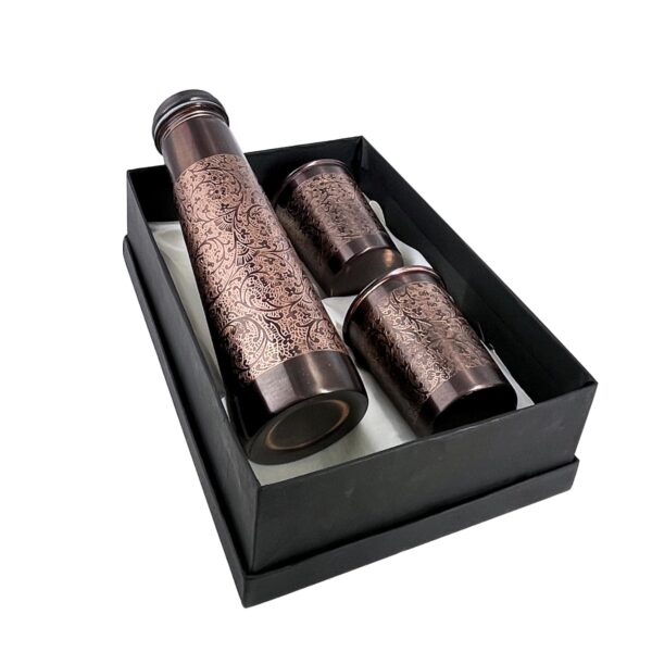 Eco – Pure Copper Bottle with Glass Set | Lighthouse Design (Brown)